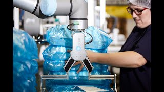 Two collaborative robots (cobots) fitted with four grippers from OnRobot are assisting…